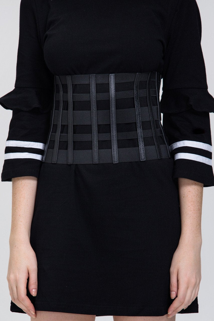OwnTheLooks adds a waist-defining drama to a weekend staple, reshaping a casual outfit with corset-style elastic weave for unexpectedly edgy allure.