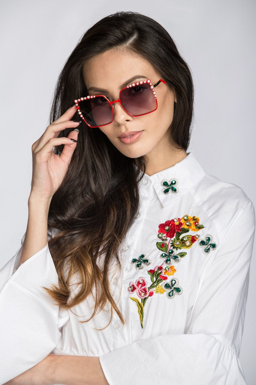 Red Square Vintage with Pearls Sunglasses