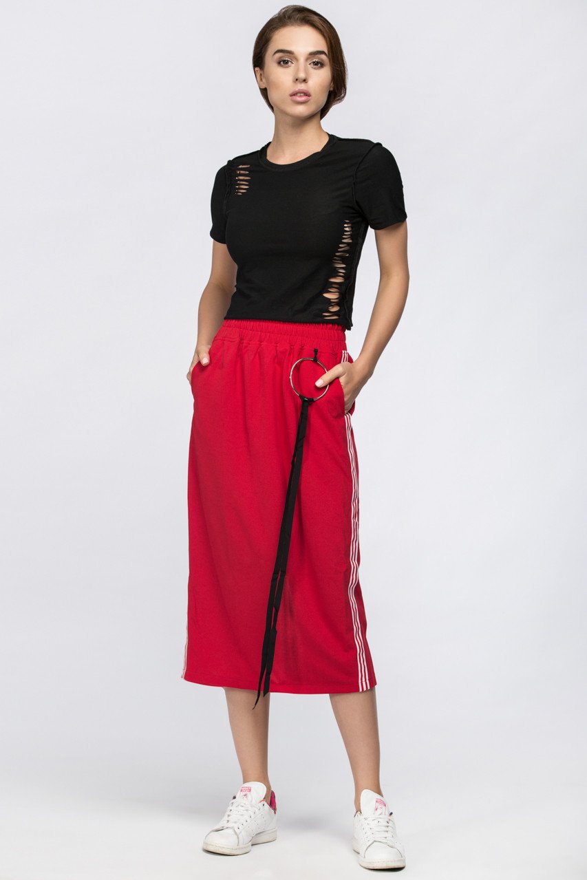OwnTheLooks takes sporty style to the streets with these comfy-cool track skirt, accented with racing stripes along the sides for extra athleisure edge.
